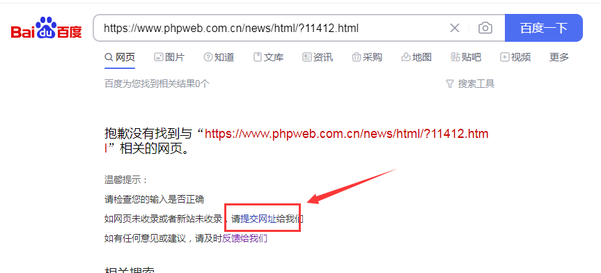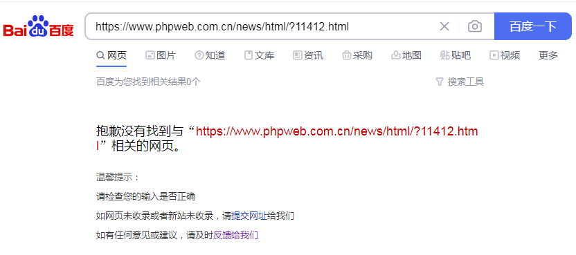 下图这个URL就代表没有被百度收录。