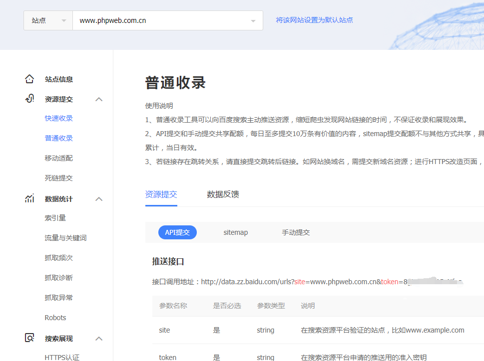 没有快速收录权限,这个API接口推送是次优选,它的收录速度比sitemap网站地图和手动提交网址都快,但这个API最多每天最多推送提交10万条。